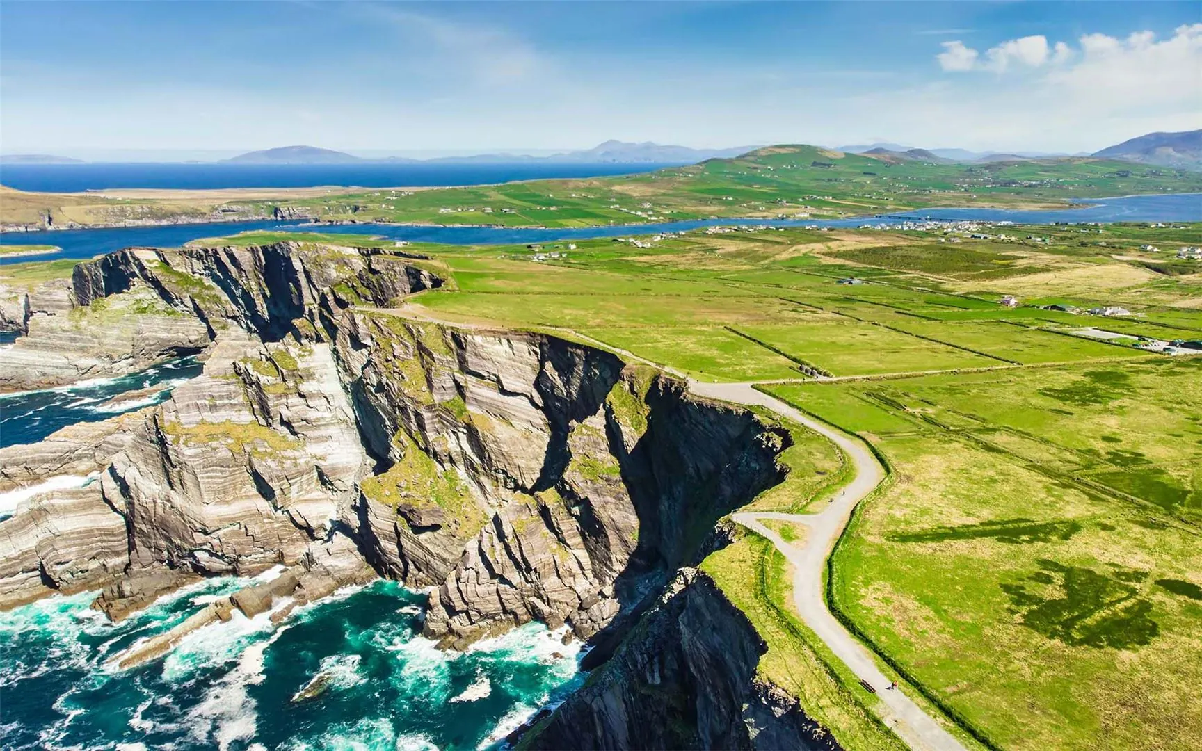 Fortunately, for those of us with limited vacation time, shorter segments of Wild Atlantic Way hold legendary status all of their own. The most popular scenic drive in Ireland, the 111-mile Ring of Kerry, is a circular route in County Kerry that runs along the coastline of picturesque Iveragh Peninsula in south-western Ireland. A jewel of Ireland, panoramic views of the Ring or Kerry’s pristine beaches, majestic mountains, rugged and verdant coastlines, historic castles, medieval ruins, rural seaside villages, and the island-dotted Atlantic await.